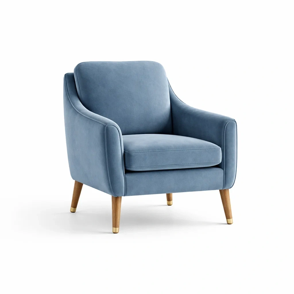 Fauteuil en Velours Bleu avec Pieds en Bois Massif